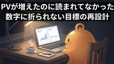 Web制作・思考ノート PVが増えたのに読まれてなかった|数字に折られない目標の再設計 WordPressのPVが増えたのに、GA4ではほぼ増えていなかった夜がありました。ボットっぽい動きの切り分けチェックと、PVに振り回されない目標の再設計(表示回数→行動指標)をまとめます。 2026.02.27 Web制作・思考ノート